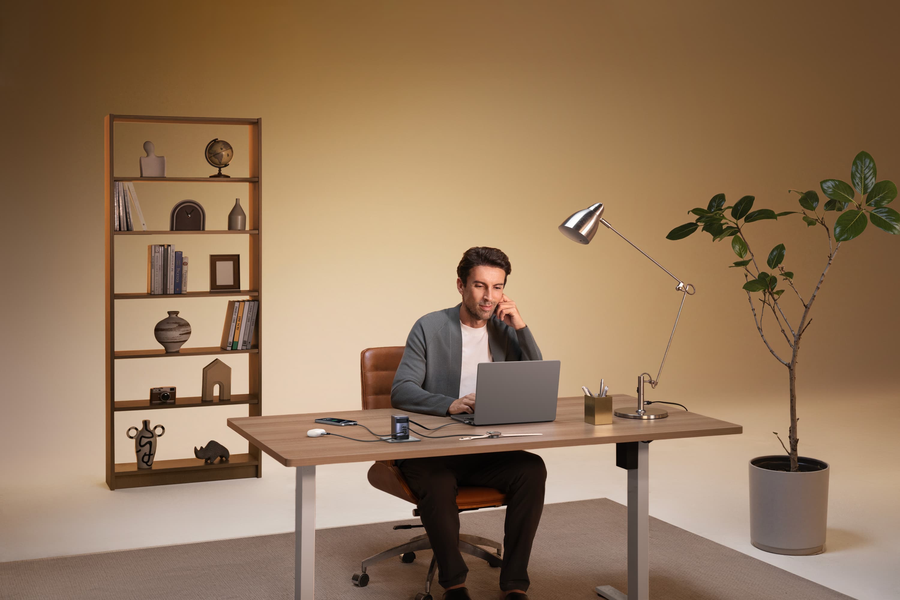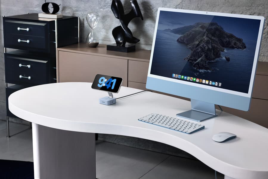 Магнитная подставка-зарядка превращает прикроватную тумбочку или кофейный столик в аккуратную станцию для iPhone и наушников. Основная площадка Qi2 выдаёт до 25 Вт для совместимых моделей, вторая — для аксессуаров.