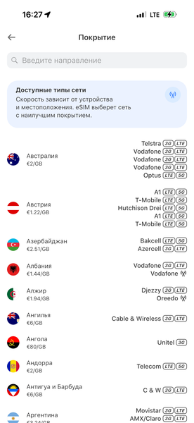 Ну и, разумеется, языковой барьер никуда не делся. Жестами на месте можно объяснить многое, но всё равно ожидания не всегда совпадают с результатом. А в приложении Yesim всё по-русски, пакеты описаны подробно, со всеми особенностями, и даже указано, какие местные операторы поддерживают 5G.