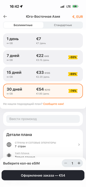 Это тоже «пакеты стран», но уже поменьше, они покрывают отдельные кусочки мира: например, Азию и Океанию, Европу (включая Великобританию) или Центральную Азию. Можно перемещаться между странами, пакет продолжит действовать. Такие пакеты уже бывают двух видов: на определенный срок с безлимитным трафиком (справедливости ради нужно сказать, что некоторые операторы могут снижать скорость в рамках так называемой «политики добросовестного использования») либо на объём трафика (с ограничением срока действия).