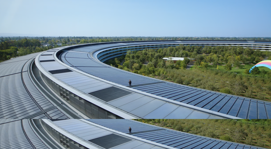А один из докладчиков — вице-президент Лиза Джексон — и вовсе выступал на крыше знаменитого офиса Apple в виде кольца.