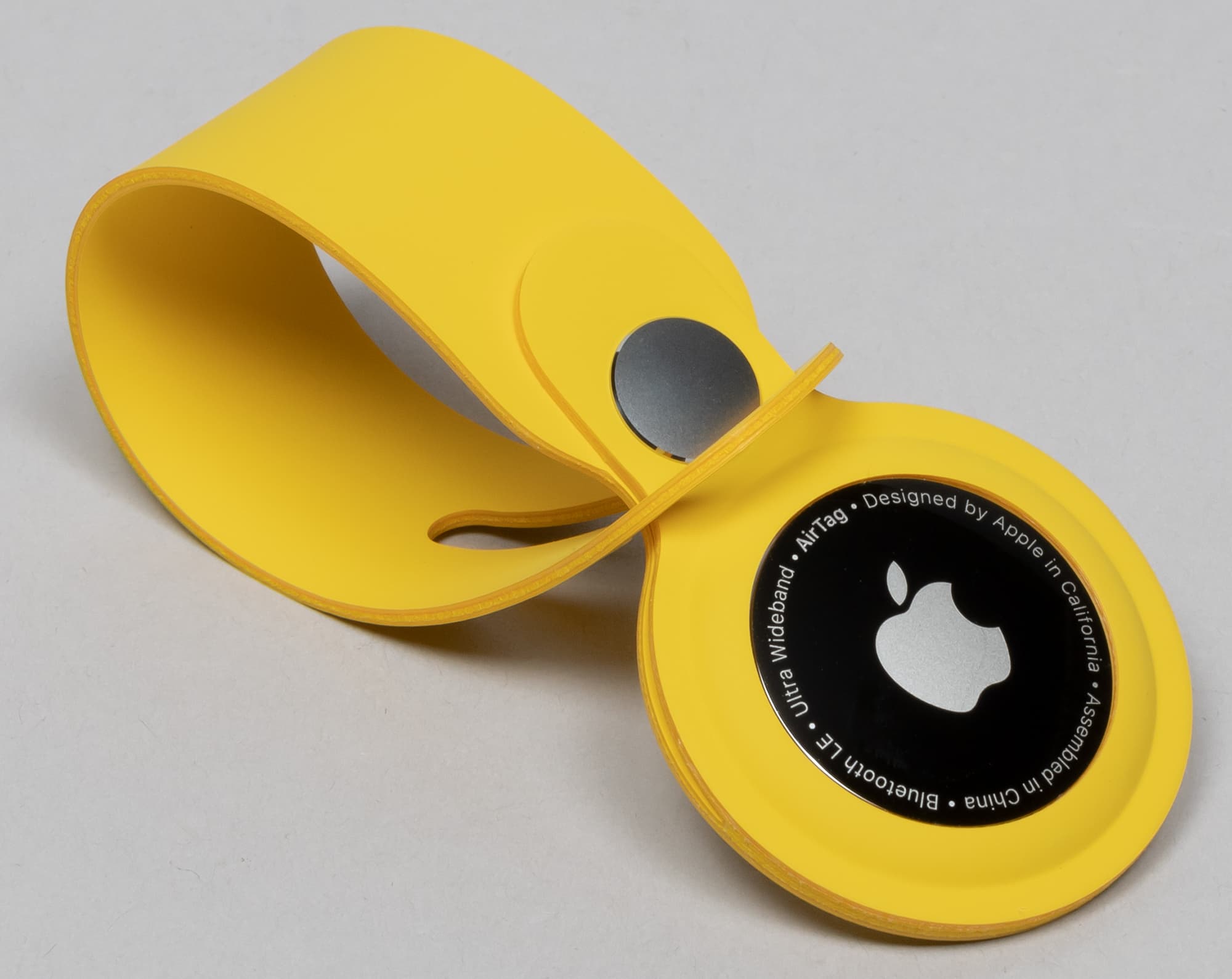 Если пропустить основание подвески со вставленным AirTag через прорезь, то получим вот такую петлю, которую как раз можно уже куда-то крепить.