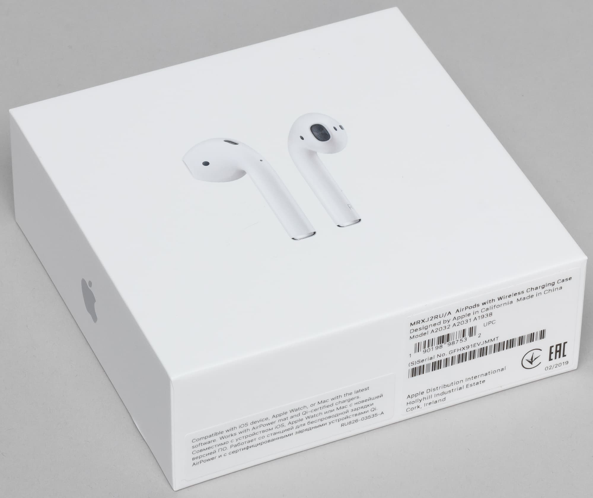 Упаковка новых AirPods почти в точности повторяет коробку предыдущего поколения. Она компактная, квадратная, выдержанная в светлом минималистичном стиле.