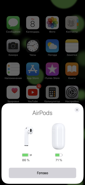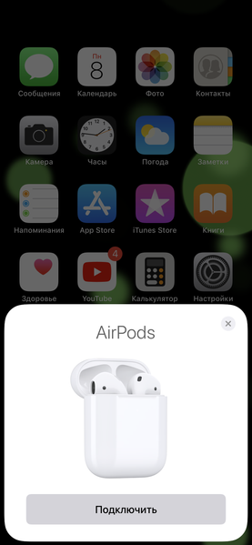 Первоначальное соединение с iOS-устройствами у AirPods происходит точно так же, как у предыдущего поколения: открываем футляр — на iPhone сразу возникает окно с предложением соединить наушники. Подтверждаем, вставляем наушники в уши — и всё, дело сделано.