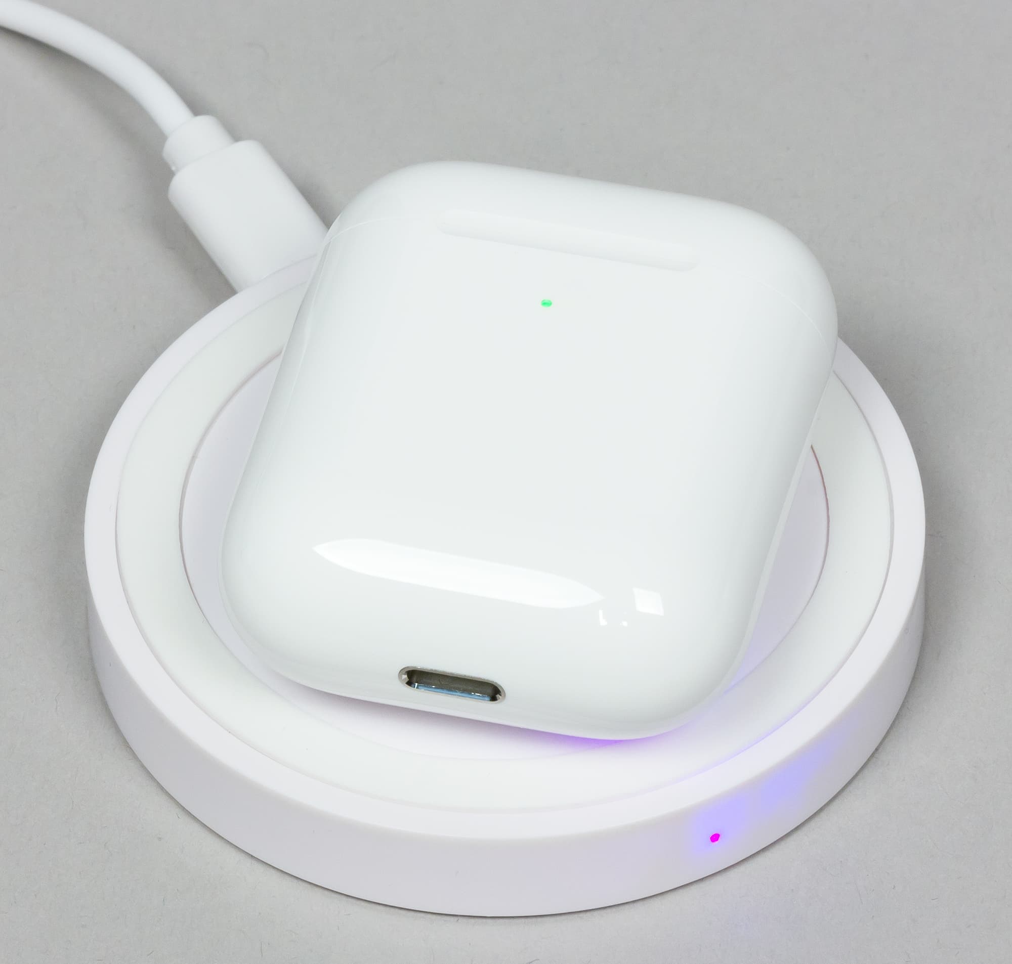 Мы попробовали новый футляр с двумя беспроводными зарядками, в обоих случаях все шло нормально, при условии, что мы размещали футляр точно по центру. Если же класть его ближе к краю поверхности, то ничего не выйдет.