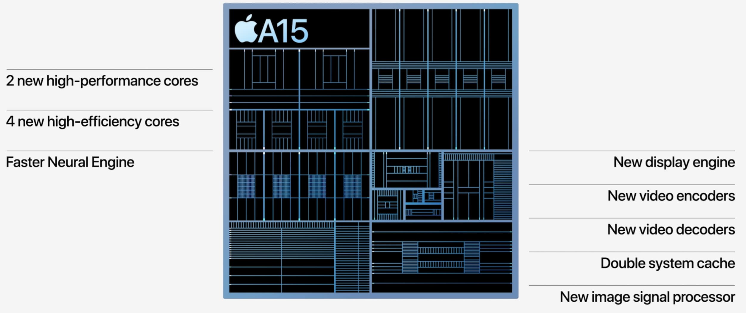 Но — вернемся к нашим айфонам. Все четыре модели оснащены SoC Apple A15 Bionic.