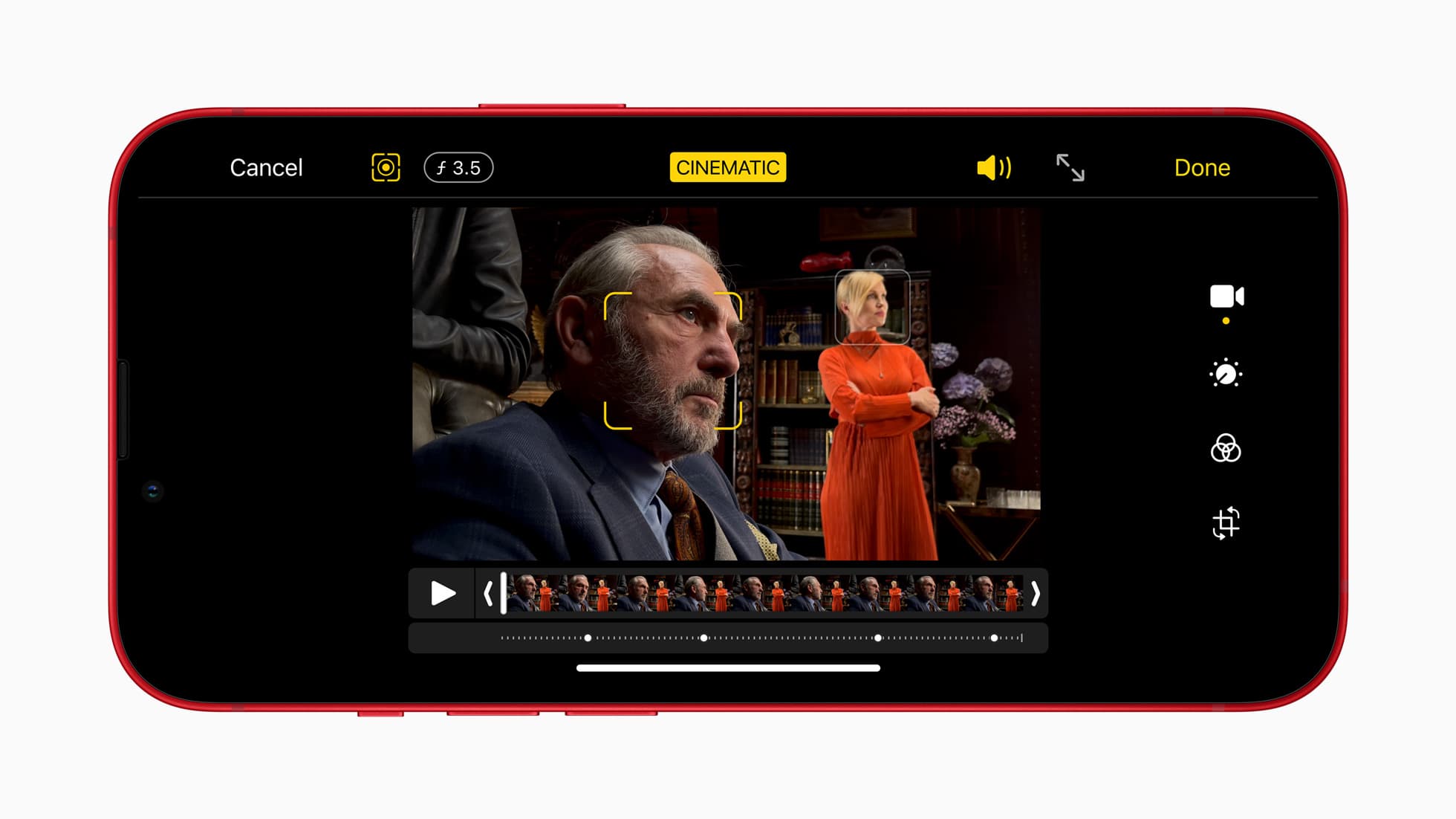 Допустим, один герой стоит на переднем плане, другой — на заднем. Сначала говорит тот, что на переднем, потом он замолкает, а фигура на заднем плане начинает двигаться. iPhone в «Кинорежиме» должен автоматически перевести фокус на дальнего персонажа. Хотя, конечно, в процессе съемки вы можете скорректировать фокус вручную.
