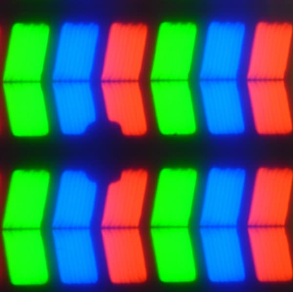 В данном планшете используется матрица типа IPS. Микрофотографии демонстрируют типичную для IPS структуру субпикселей: