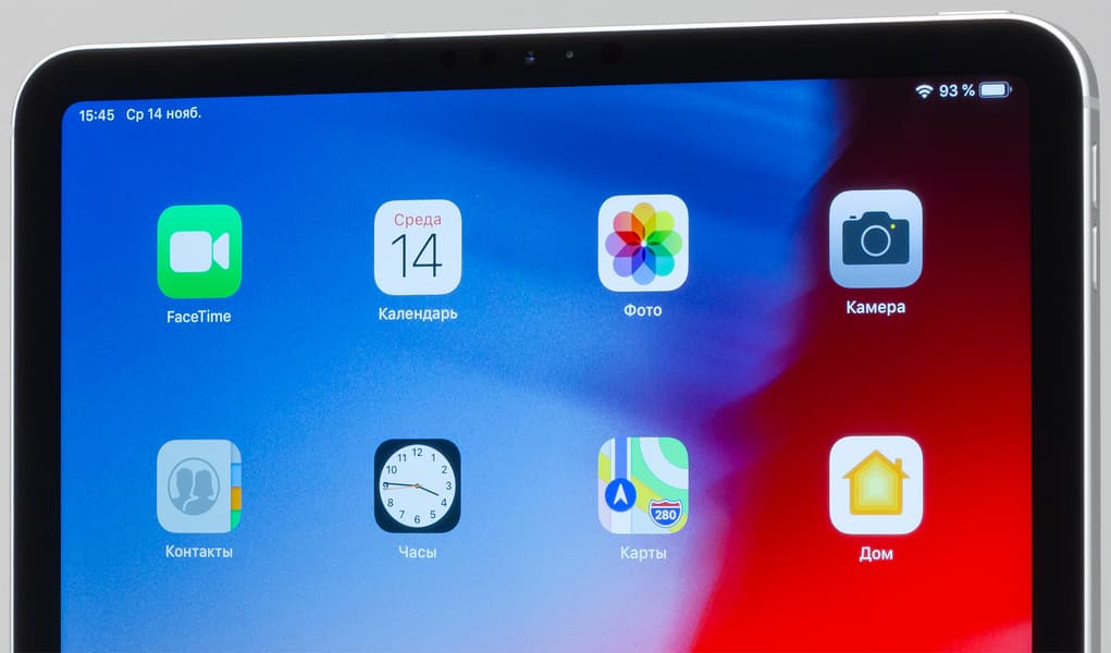 iPad и раньше был образцом минималистичного дизайна. Но теперь это качество доведено до предела. Фактически, на лицевой стороне нет ничего, кроме экрана и узкой черной полоски вокруг него, на всем своем протяжении одинаковой по ширине. Как все уже знают, вслед за iPhone X планшеты iPad Pro лишились круглой кнопки Home, зато обрели камеру TrueDepth и систему распознавания лица Face ID (о ее работе мы скажем отдельно). Но что интересно, при ее размещении инженеры Apple сумели обойтись без «челки», вызывающей немало критики (но и подражаний!) в адрес iPhone семейства X.