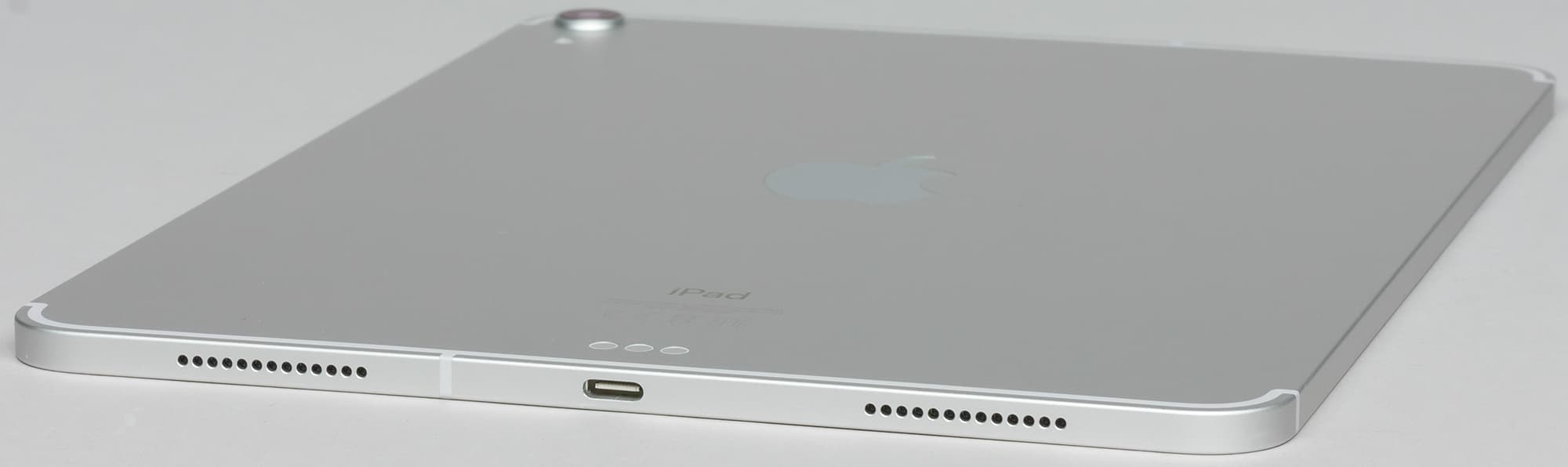 В целом дизайн новых iPad (и, в данном случае, iPad Pro 11″) производит сильное впечатление. Это действительно переосмысление линейки — причем по всем параметрам. Планшет стал тоньше, легче, компактнее по всем габаритам, обрел новый разъем USB-C вместо Lightning, два новых магнитных коннектора (вместо прежнего одного) и камеру TrueDepth, а также совершенно новый внешний облик.