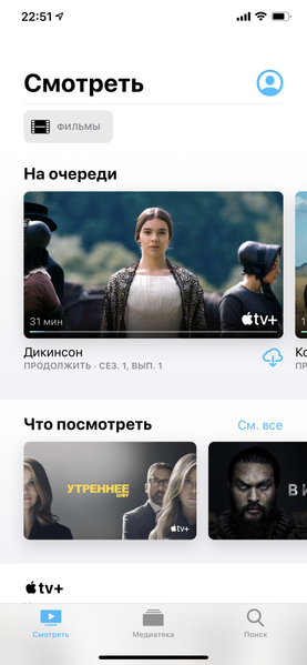 Все это справедливо и для мобильных устройств. Хотя на iPhone поначалу может сложиться ощущение, что TV+ заполонил буквально все. Но стоит промотать ниже — и там будут уже обычные фильмы из магазина.