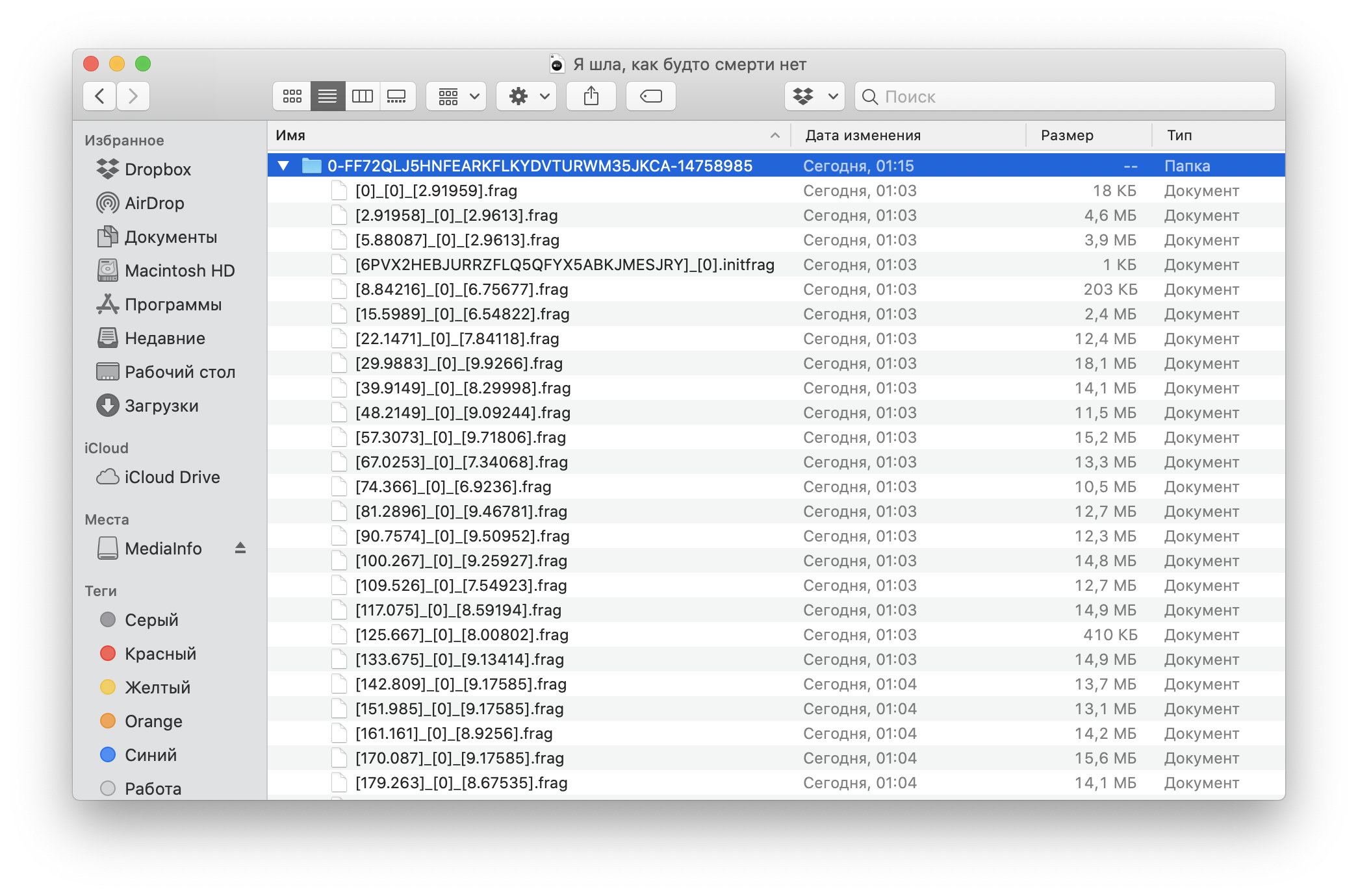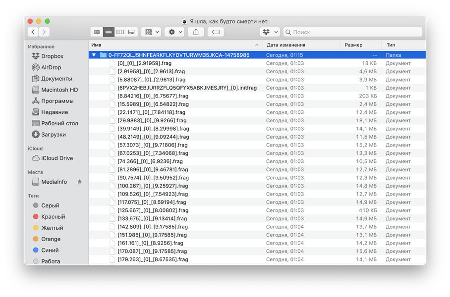 Файл HLS Video можно открыть как пакет, и содержимое его весьма интересно. Внутри там огромное количество папок, но почти весь объем составляет первая. В ней — множество примерно одинаковых файлов с расширением .frag.