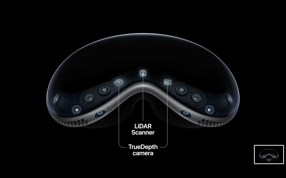 Далее, в гарнитуре используются сразу два чипа: уже известная нам по ноутбукам SoC Apple M2 и совершенно новая Apple R1, которая нужна для обработки в режиме реального времени данных с 12 камер, 5 сенсоров, а также 6 микрофонов. И да, устройство буквально нашпиговано камерами и датчиками. В этом смысле ничего сопоставимого у Apple не было. И здесь возникает еще один вопрос: а насколько вся эта конструкция хрупкая? Насколько критичны для нее падения или, например, возможные удары при перевозке?
