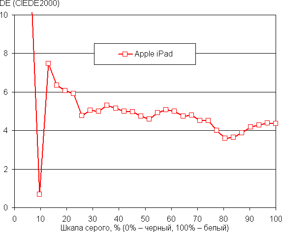 Подведем итоги. Экран имеет очень высокую максимальную яркость и обладает хорошими антибликовыми свойствами, поэтому устройством без проблем можно пользоваться вне помещения даже летним солнечным днем. В полной темноте яркость можно понизить до комфортного уровня. Допустимо использовать и режим с автоматической подстройкой яркости, работающий более-менее адекватно, но в старом стиле Apple. К достоинствам экрана нужно отнести олеофобное покрытие, отсутствие мерцания, высокую стабильность черного к отклонению взгляда от перпендикуляра к плоскости экрана, хорошую равномерность черного поля, а также цветовой охват sRGB и близкий к стандартному цветовой баланс. Значимых недостатков у экрана нет.