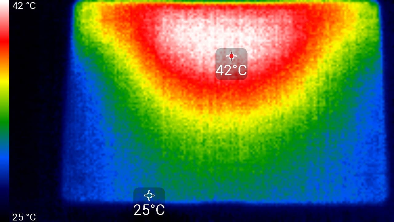 Ниже приведены теплоснимки, полученные после 15 минут работы теста аккумулятора в программе GFXBench Metal. Температура окружающей среды составляла 24 градуса. Сверху: