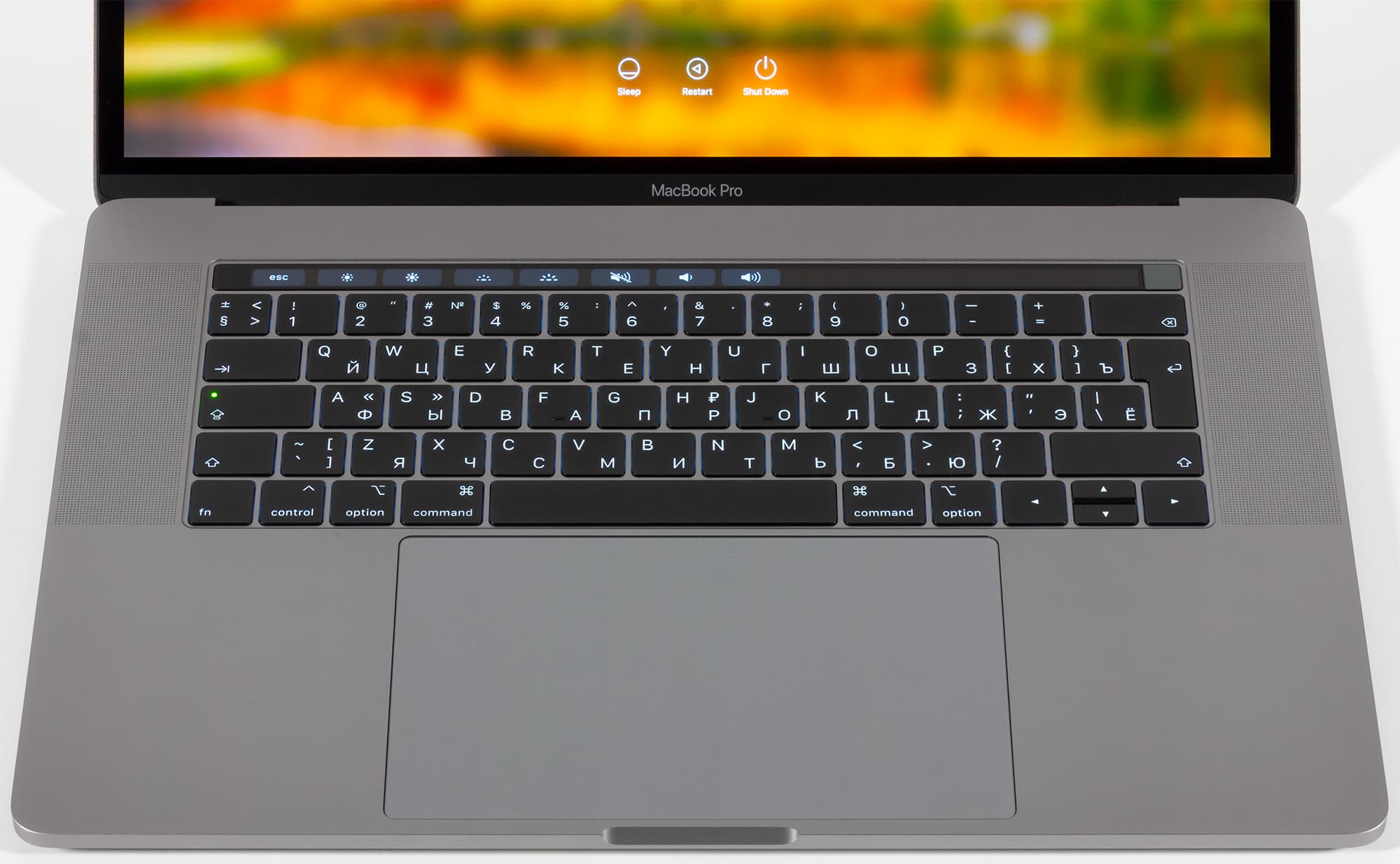 Внешний вид самого ноутбука не изменился. Габариты вплоть до десятой доли миллиметра остались прежними, и, честно говоря, минусом это не назовешь: корпус MacBook Pro по-прежнему вызывает восхищение. Если говорить о 15-дюймовой модели, то это один из самых компактных ноутбуков с таким экраном на рынке, но при этом у него сенсорная панель Touch Bar, огромный трекпад и стереодинамики по обе стороны от клавиатуры.