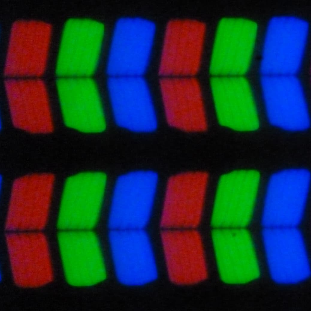 В данном MacBook Pro используется матрица типа IPS. Микрофотографии демонстрируют типичную для IPS структуру субпикселей: