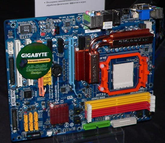 - В чипсет интегрировано графическое ядро, усиленное (по официальным данным на 33%) по сравнению с имеющимся в AMD 780G, аналогично поддерживается установка выделенной памяти (причем в данном случае эта опция, судя по характеристикам первых плат, обещает стать правилом, а не исключением), при установке видеокарты уровня Radeon HD 3450/3470, ее ресурсы могут объединяться с ресурсами интегрированного ядра в режиме Hybrid CrossFire для подъема производительности в 3D;