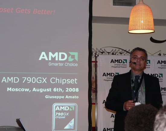 Едва ли журналисты могут пожаловаться на то, что AMD экономит на информационной поддержке своих продуктов. Вроде бы выпуск чипсета может показаться не столь громким событием, но в Москву «держать речь» по этому поводу приехал директор по техническому маркетингу в Европе Джузеппе Амато, уже знакомый (и журналистам, и интересующимся темой читателям) по весьма подробным и технически детализованным рассказам о новинках от AMD. Кроме того, поскольку AMD теперь «платформенная» компания, и единственная в своем роде, выпускающая и центральные процессоры, и графические, чипсет, как координирующее звено платформы, действительно приобретает особую значимость. Соответственно, удачный чипсет может добавить привлекательности компьютеру в целом, а учитывая значительное усиление позиций AMD на рынке графических процессоров, склонить чашу весов в пользу AMD-платформы, в том числе и с точки зрения активного любителя игр, становится все проще, тем более, что на достигнутом AMD останавливаться не собирается, и совсем скоро последуют новые весомые аргументы.