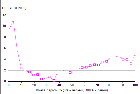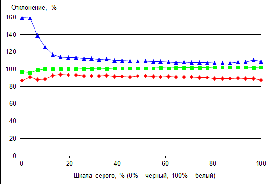 Основные цвета (красный, зеленый, синий) отлично сбалансированы по всей шкале серого.
