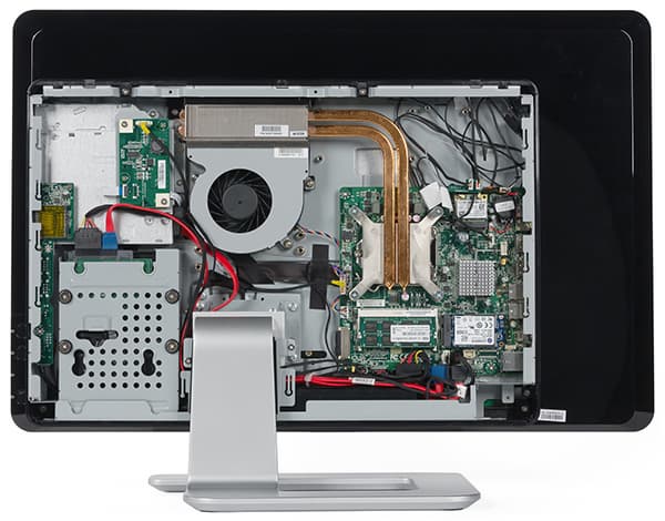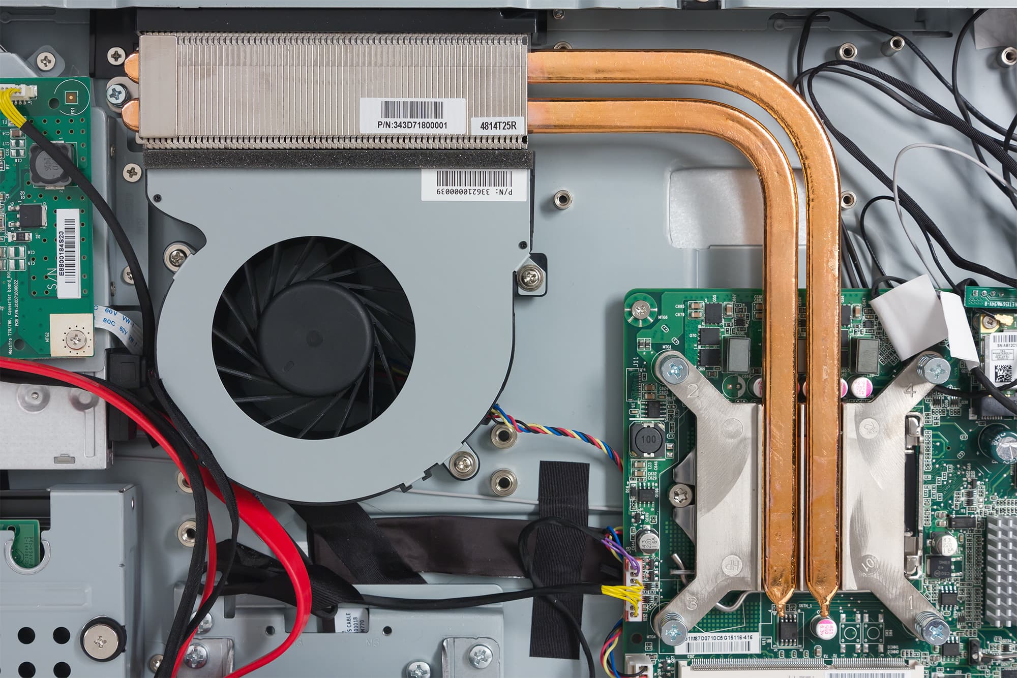 Система охлаждения моноблока представляет собой один кулер, выдувающий воздух через вентиляционные решетки, расположенные в верхней части на задней поверхности корпуса. Кулер связан двумя тепловыми трубками с теплосъемной площадкой, соприкасающейся с процессором.