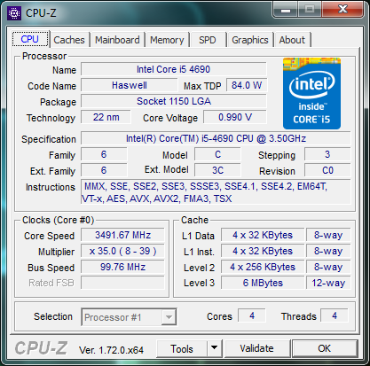 Основой конфигурации является процессор для настольных ПК Intel Core i5-4690. Это четырехъядерный процессор (без поддержки технологии Hyper-Threading) с номинальной тактовой частотой 3,5 ГГц, которая в режиме Turbo Boost может повышаться до 3,9 ГГц. Размер его кэша L3 составляет 6 МБ, а TDP — 88 Вт. Подчеркнем, что процессор устанавливается в обычный разъем LGA1150 и может быть легко заменен.