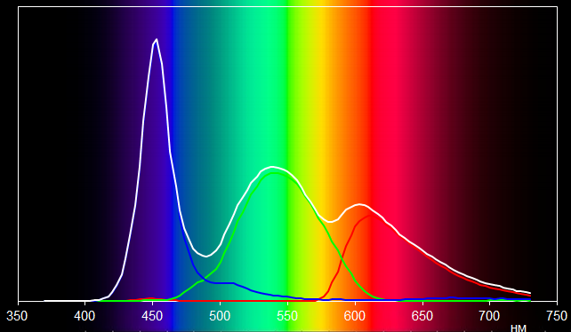Светофильтры ЖК-матрицы довольно неплохо изолируют основные цвета.