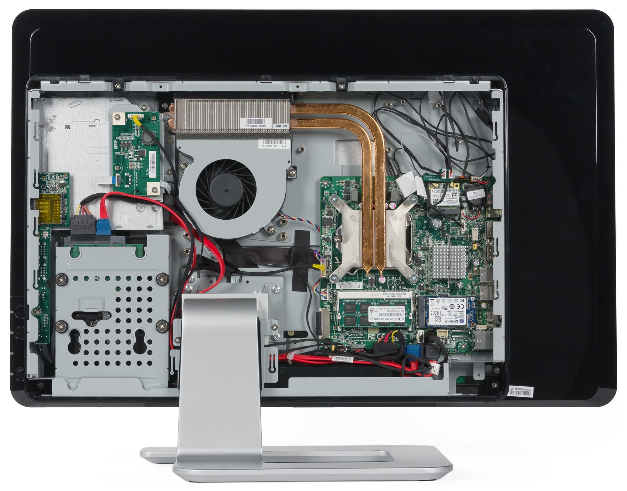 Как видно по спецификации моноблока, в его основе лежит конфигурация, представляющая собой нечто среднее между классической конфигурацией ноутбука и настольного ПК. Блок питания используется внешний, модули памяти тоже ноутбучные, а вот все остальное — как в обычном настольном компьютере (правда, без возможности разгона).