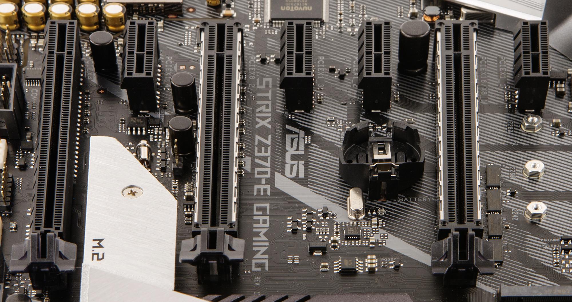 Для установки видеокарт, плат расширения и накопителей на материнской плате Asus ROG Strix Z370-E Gaming имеется три слота с форм-фактором PCI Express x16, четыре слота PCI Express 3.0 x1 и два разъема M.2