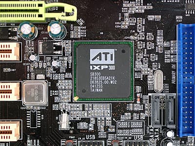 Как легко заметить из сравнительно таблицы, отличается Pro-версия тремя пунктами в спецификации: количество поддерживаемых портов USB 2.0 увеличилось с 6 до 8, появились два порта Serial ATA, кроме того, встроенное графическое ядро теперь поддерживает технологию FULLSTREAM. Официальное описание от ATI гласит что это «pixel shader based video processing technology that improves the quality and performance of video playback» т.е. технология, призванная улучшить качество изображения при воспроизведении видео и снизить загрузку центрального процессора. Однако поскольку данная тема относится скорее к разделу «Видео», мы не будем останавливаться на этой технологии подробно, ограничившись просто упоминанием того, что теперь она поддерживается еще и во встроенном графическом ядре от ATI. Легко заметить, что основную лепту в большинство изменений вносит новый южный мост: ATI IXP300.
