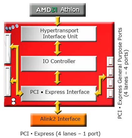 - интерфейс Alink2 (4 линии/1 порт PCIEx4) для подключения южного моста