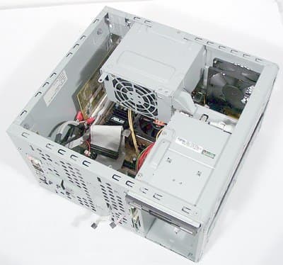 - Комплектация: корпус, БП, плата (плюс платка расширения с COM- и Game-портами), {многофункциональная PCI-карта расширения и радиоантенна}, [внутренний картовод], [внутренний FM-тюнер и FM-антенна], 3-дюймовый дисковод, процессорный кулер, CD, руководства, 2 предустановленных кабеля ATA66, кабель SATA, разветвитель питания, кабель питания комплекта