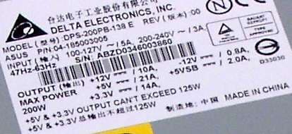 - БП: Delta DPS-200PB-138 E, 200 Вт (маркировка)