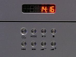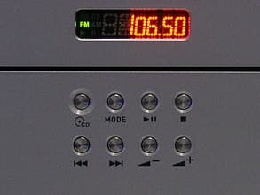 Включение компьютера в этот режим осуществляется нажатием левой верхней кнопки под светоиндикаторным дисплеем, вторая слева кнопка в том же ряду переключает функцию «центра» (Audio CD/FM-радио), остальные выполняют абсолютно тривиальные действия в соответствии со своими пиктограммами. Доступно сохранение (во флэш-память) частот девяти избранных радиостанций и последующее быстрое переключение между ними. Перемотка по треку традиционно отсутствует. Режимы работы индицируются на крохотном светодиодном экранчике: номер трека и время проигрывания, номер радиостанции (из числа сохраненных) и ее частота. Если T2 находится не в режиме Audio DJ, то на дисплее отображается текущее время.