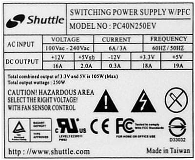 - БП: Shuttle Silent X (PC40N250EV), 250 Вт (маркировка)