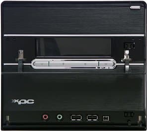 Смотрится довольно необычно, но как почти всегда у Shuttle очень стильно (дизайнеры компании не устают приятно удивлять). Многие производители barebone-комплектов (например, Soltek) давно уже применяют подобные крышки для передней панели, и хотя о вкусах спорить, разумеется, бесполезно, отметим, что, на наш взгляд, это решение удачное. Собственно, и в Shuttle уже пришли к использованию такого дизайна (в «массовой» серии корпусов «P»), но в статьях нашего сайта подобные модели раньше не обозревались. Особенностью корпуса является ряд вентиляционных отверстий не только в боковинах крышки корпуса, но и в днище проблема охлаждения в современных решениях стоит очень остро.