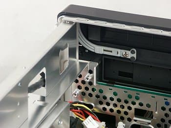 Доступ к 5-дюймовому отсеку изнутри позволяет отрегулировать передатчик нажатия на кнопку выдвижения лотка, если эта кнопка на передней панели CD/DVD-привода расположена в нестандартном месте.