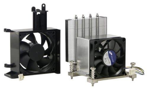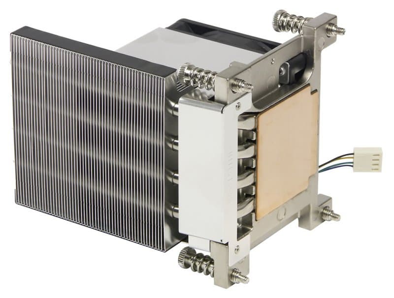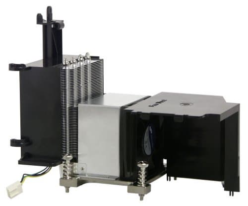 Системный вентилятор в своем коробе может поворачиваться вокруг оси крепления, это полезно при установке процессора в сокет.