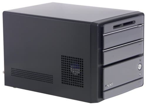 Корпус серии «P» по габаритам чуть больше различных модификаций «G»: его размеры составляют 220x325x210 мм, то есть на 20—25 мм превышают таковые для «G» по каждому измерению. Крышка алюминиевого корпуса выкрашена в черный цвет (хотя в других моделях цвет, разумеется, может быть иным), накладка на переднюю панель — традиционно пластиковая. В устройстве передней панели удачно (на наш взгляд) комбинируются черты G4 — прозрачная пластиковая накладка с серым фоном, и G5 — наличие крышек на отсеках для дисковых накопителей и интерфейсных разъемов. Barebone-комплект выглядит строго и красиво (шарма добавляют металлические полоски между отсеками и кнопки включения и перезагрузки системы), а по удобству в использовании, как мы уже отмечали, вариант с крышками наиболее предпочтителен.