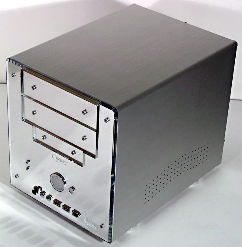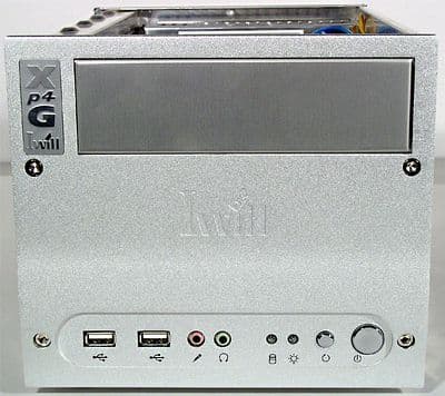 О том, что barebone-комплект Iwill XP4-G практически полностью соответствует уже рассмотренной нами модели XP4, недвусмысленно свидетельствует его название. Действительно, за исключением слегка модифицированной внешности (точнее даже, передней панели) и одной особенности, прямо следующей из иного чипсета материнской платы XP4-G, различий между комплектами нет, так что предлагаем вам освежить свою память описанием из прошлого обзора. Ну а представляя кратко внешний вид нынешней модели, можно отметить привлекательный маленький размер (190(Ш)x270(Г)x165(В) мм) «кубического» алюминиевого корпуса с вентиляционными отверстиями по бокам. Выполненная из серебристого в крапинку пластика передняя панель выглядит неброско, но многое будет зависеть от установленного вами 5-дюймового накопителя.