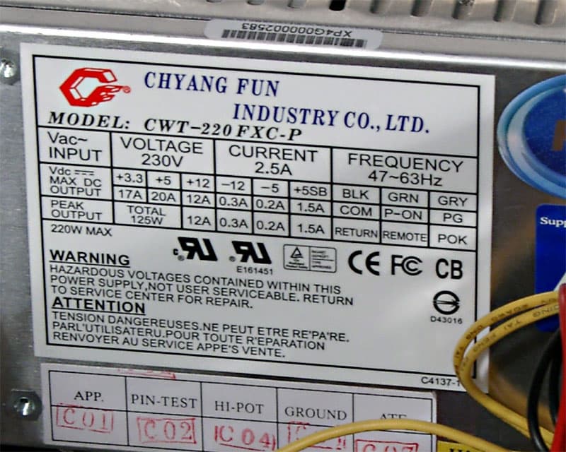 - БП: Chyang Fun CWT-220FXC-P, 220 Вт (маркировка)