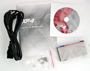 - Комплектация: корпус, БП, процессорный кулер, плата, CD, руководства, 3 «узких» шлейфа (2 ATA66 и 1 FDD), кабель питания, крепежные винты