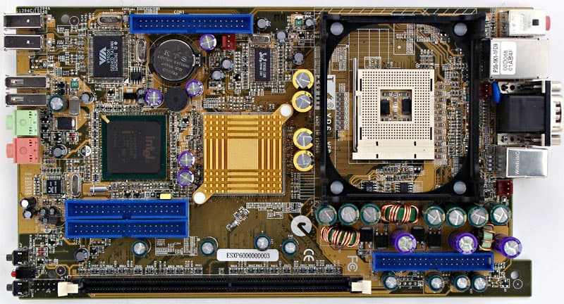 - Разъемы на задней панели: 2 PS/2, 1 COM, 1 VGA, 1 LAN, 2 USB (2.0), 2 Audio (микрофон/линейный выход)