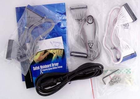 Чрезвычайно странно было и в коробке с EQ3701M обнаружить шлейфы ATA, имеющие по два коннектора каждый (один шлейф рассчитан на подключение всего одного устройства) Soltek с достойным лучшего применения упорством продолжает такую странную политику комплектации barebone-систем, в качестве отличительного признака которых называется два 5-дюймовых отсека (2 оптических накопителя + 1 винчестер = 3 устройства). Конечно, можно докупить отдельно обычный шлейф и изготовить из него «узкий» самостоятельно (или купить уже готовый), но, кажется, покупатель дорогой системы вправе рассчитывать на большее.