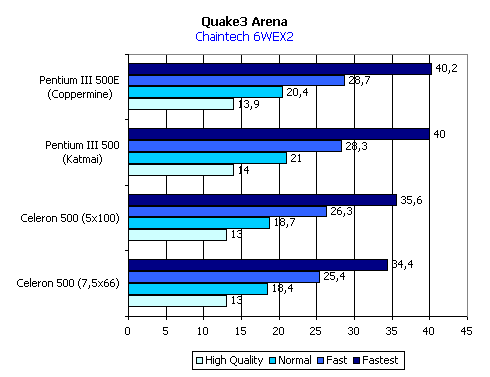 Как и всегда, в заключение посмотрим на производительность системы, построенной на Chaintech 6WEX2. При этом использовался следующий набор комплектующих: