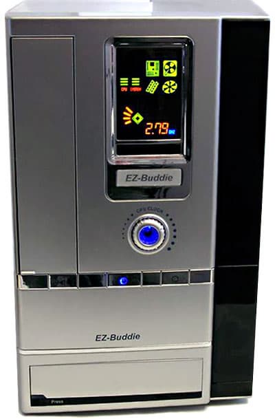 Система охлаждения EZ-Buddie включает 80-миллиметровый вентилятор на задней стенке корпуса, работающий на выдув, и процессорный кулер (на обоих мостах чипсета установлены игольчатые радиаторы, но пассивным охлаждением дело и ограничивается).
