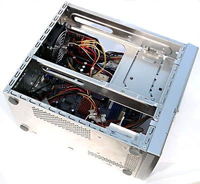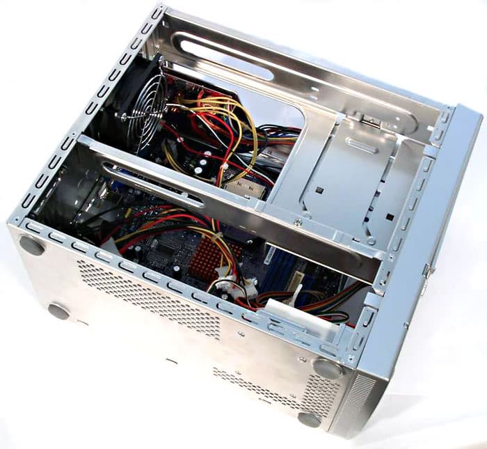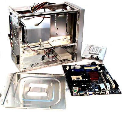 - Комплектация: корпус, внешний БП и внутренняя плата преобразователя напряжения, материнская плата, процессорный кулер, CD, руководство, 2 «узких» шлейфа (ATA66 и ATA100), картовод, кабель питания