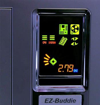 Наконец, перейдем к самой интересной особенности представленного barebone-комплекта: светоиндикаторной панели EZ-Watcher и рукоятке для разгона процессора.