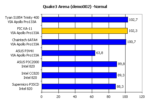 Как видно из результатов тестов, FIC KA-11 показывает вполне нормальную для плат на VIA Apollo Pro133A производительность.