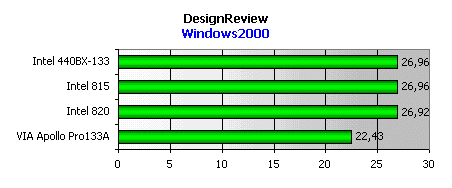 В промышленном дизайнерском программном пакете i815 снова похвастать особо нечем. Однако, во всех профессиональная OpenGL-графика под Windows 2000 оказалась единственным применением, где i815 не порадовал нас высокими показателями. Впрочем, ничего странного в этом нет. Естественно, для этих целей лучше подходит high-end чипсет i820.
