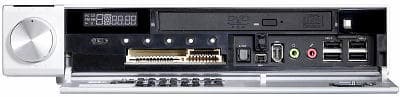 Тихий симпатичный ПК с интуитивно понятным ЖК-дисплеем поддерживает воспроизведение CD/CD-R/VCD/DVD/MP3/Karaoke/Picture-CD форматов, оборудован ТВ/FM тюнером с возможностью записи, выходом на HDTV-совместимое устройство отображения, интерфейсами для цифровых фотоаппаратов, PDA, мобильных телефонов, тремя сетевыми интерфейсами (10/100 Мбит/с, 1 Гбит/с и 802.11b Wi-Fi). Помимо этого, в автономном (без загрузки операционной системы) режиме возможно воспроизведение музыки с Audio CD, прослушивание FM радио.